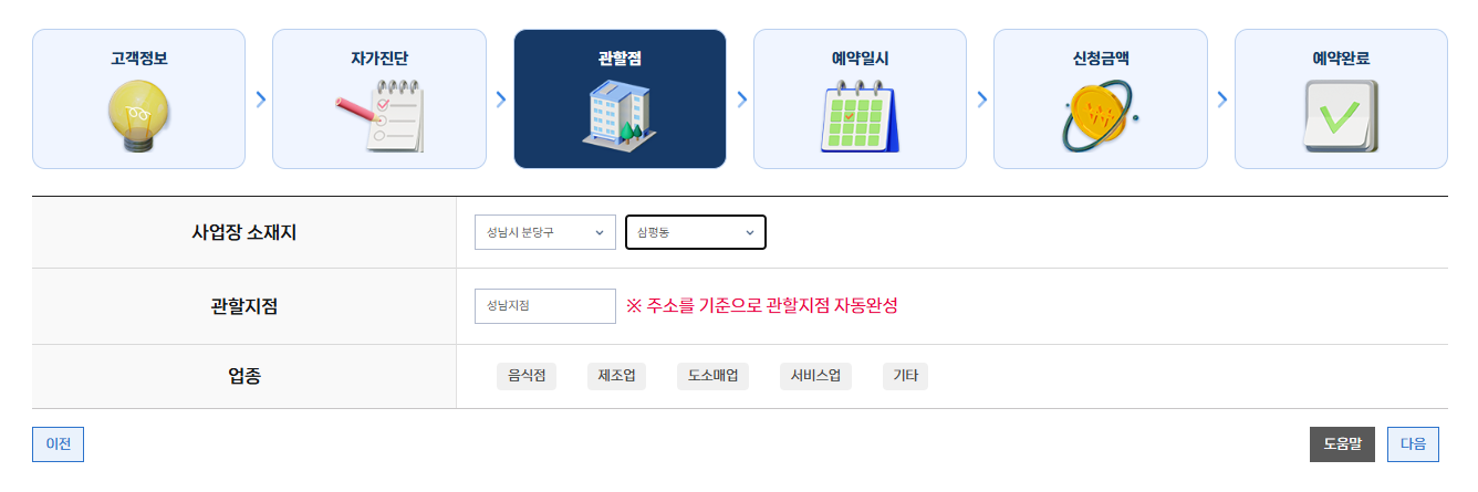 사업장 기준 주소, 업종 선택해주세요 :)