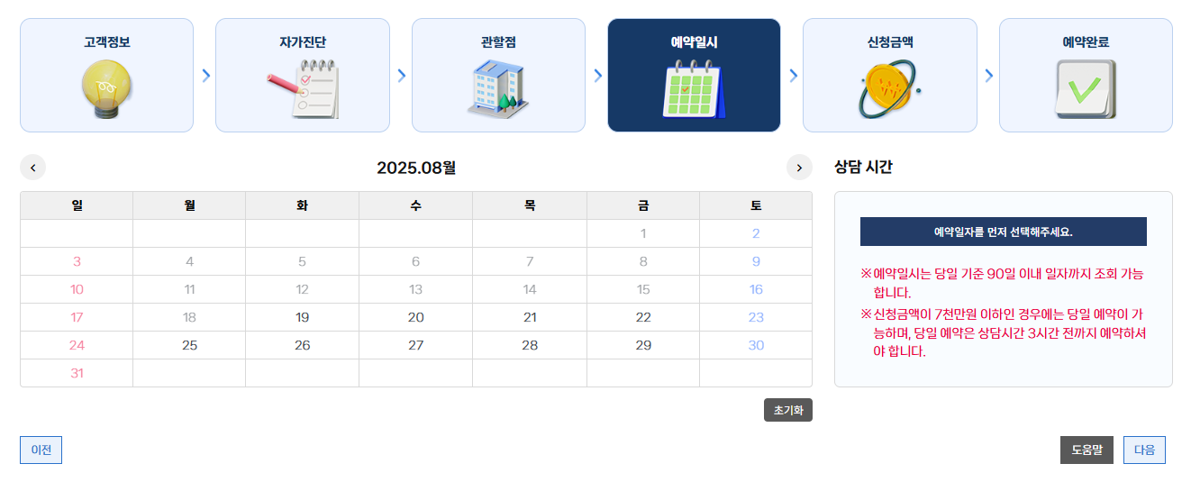 방문하시고자 하는 날짜와 시간을 고른 후 '다음'을 눌러주세요