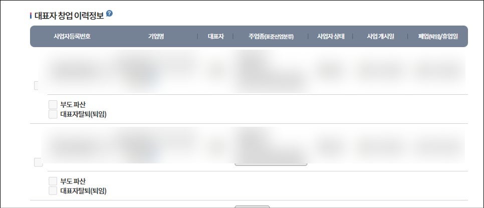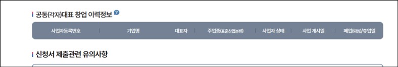 기 창업이력 유무 확인하세요.