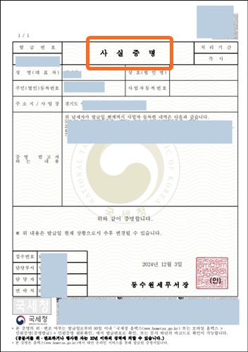이 두 가지는 국세청 홈택스 사이트에서 발급받을 수 있습니다.