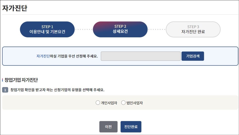 신청기업의 유형과 정보를 입력하세요.