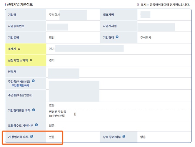 #창업기업 해당 유무 확인 가능합니다.