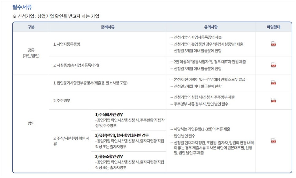 ☑창업시와 중소기업확인서 신청시