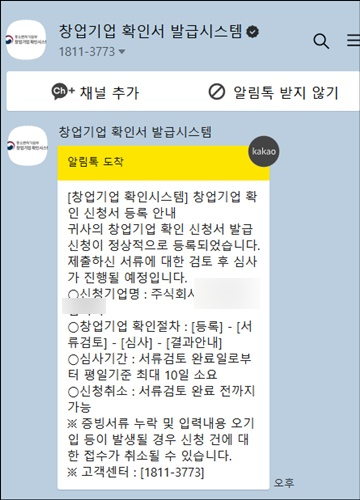 중소벤처기업부 창업기업 확인시스템