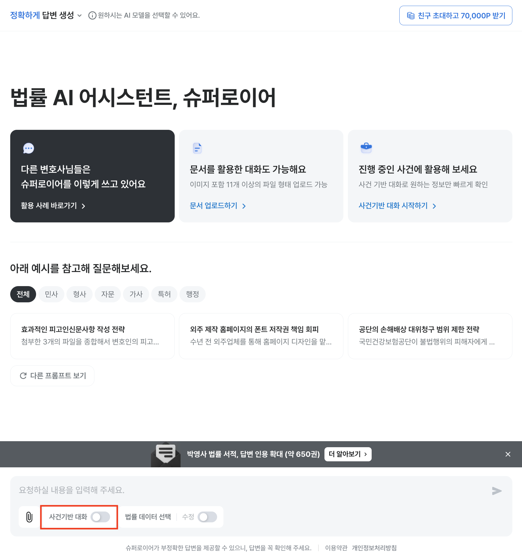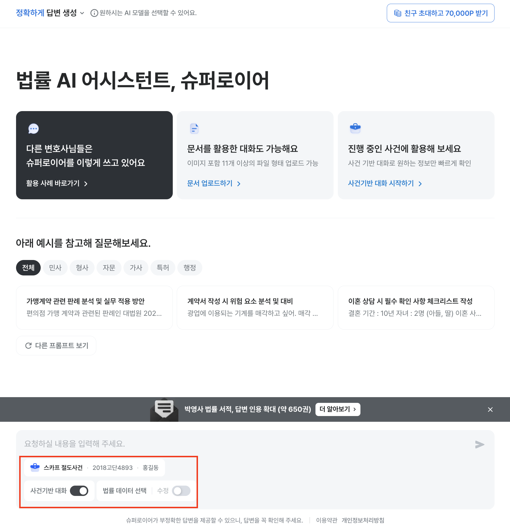 해당 사건과 관련된 질문을 하면, 슈퍼로이어가 해당 문서와 사건 정보를 참고하여 응답합니다.