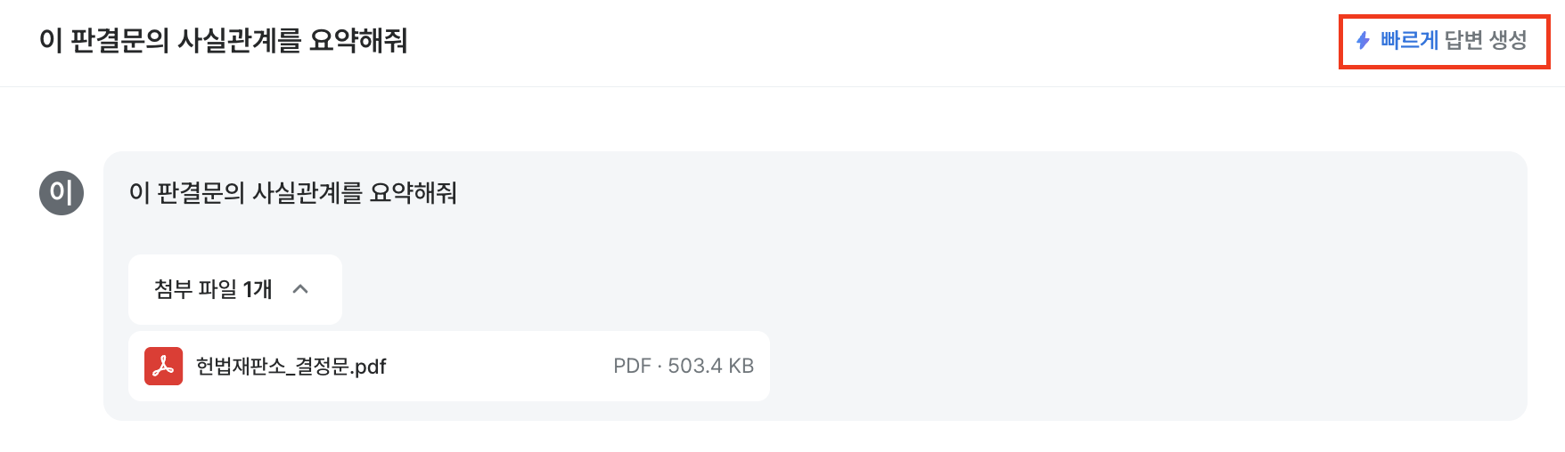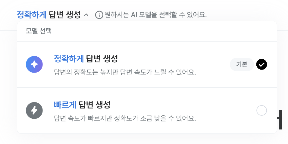 AI가 법률 데이터를 참조해야 하는 작업은 '정확하게'를 선택하고, 일상적인 질의는 '빠르게'를 선택해서 이용해보세요.