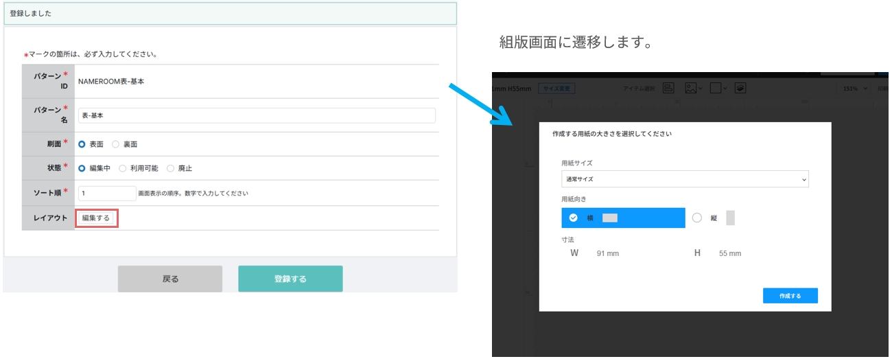 登録が完了すると一番下にレイアウトが追加されるので、「編集する」ボタンをクリックします。