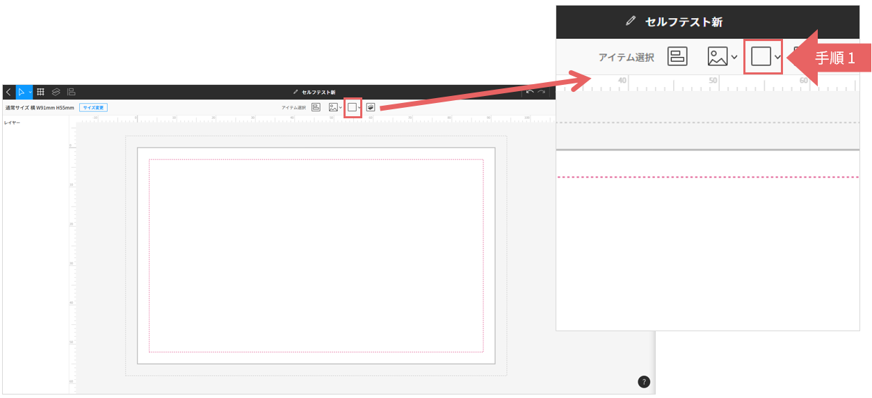 ヘッダーのアイテム選択から「四角形」アイコンをクリックします。