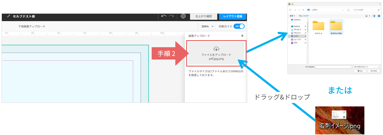 レイアウトの作成の元となる下地をアップロードします。