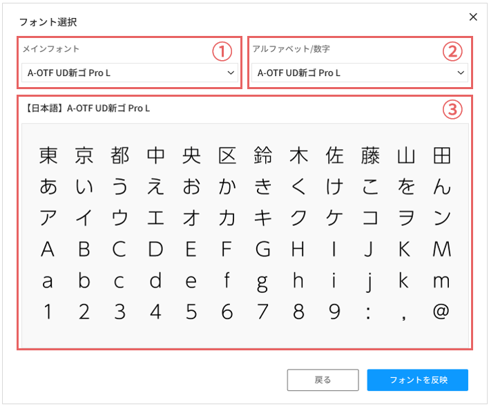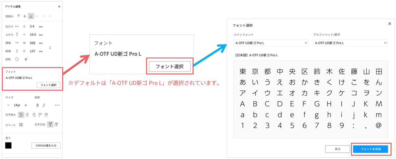 ※デフォルトは「A-OTF UD新ゴ Pro L」が選択されています。