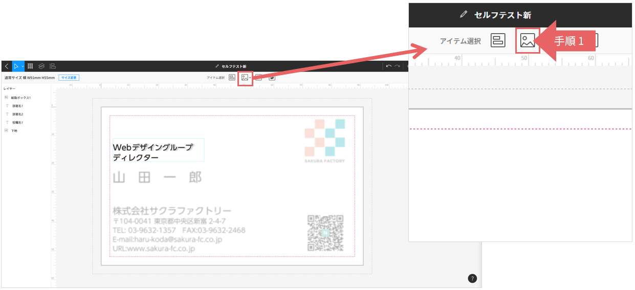 会社ロゴや会社名の画像など固定で配置する画像を追加します。