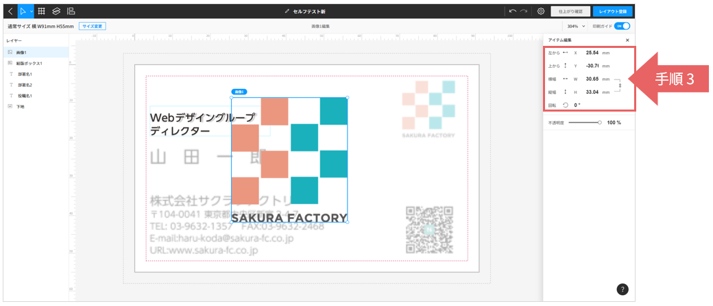 アップロードした画像のサイズと位置をアイテム編集エリア