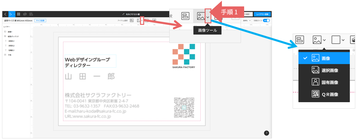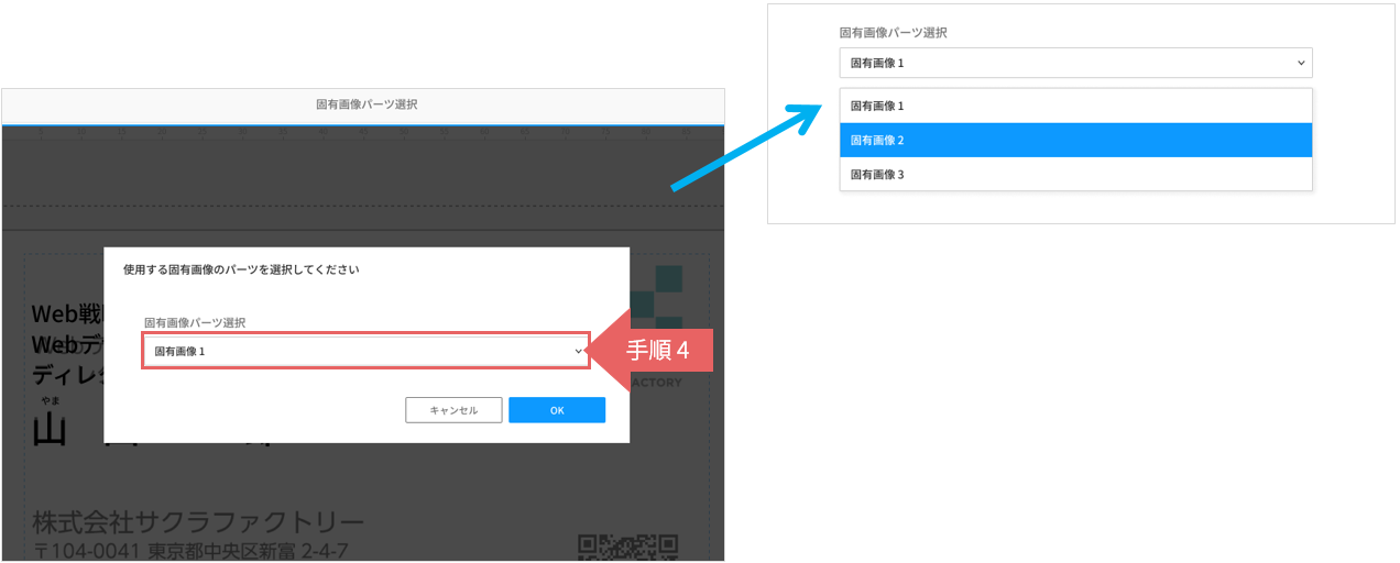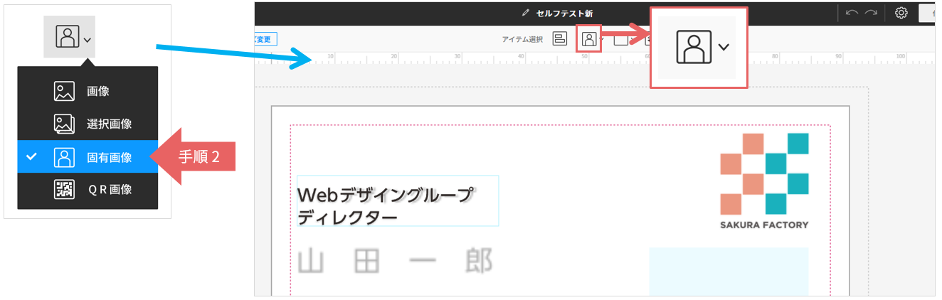 顔写真などユーザーごとに出し分け可能な画像エリアを追加します。