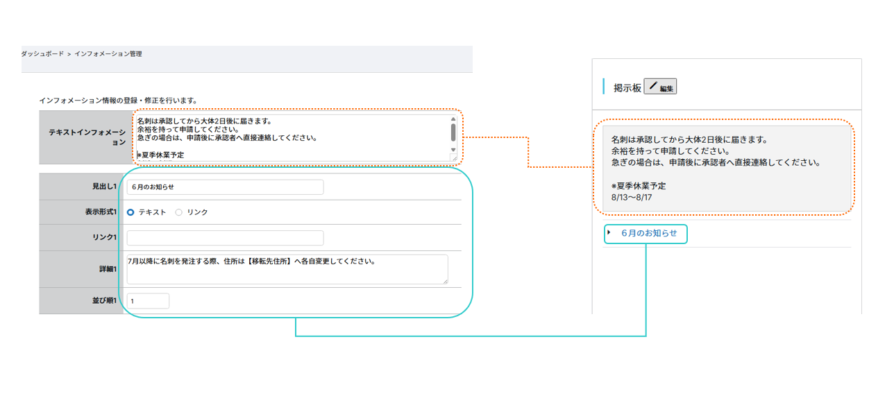 ♦「テキストインフォメーション」は入力した内容の全文を、そのまま掲載することが可能です。