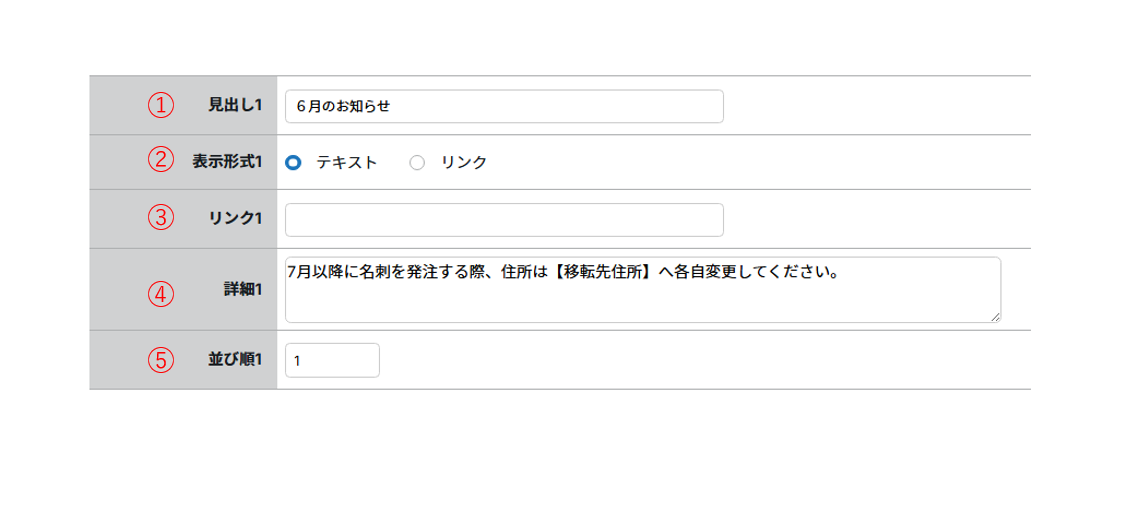 1~10までの半角数字を入力し、お知らせの表示順を指定してください。
