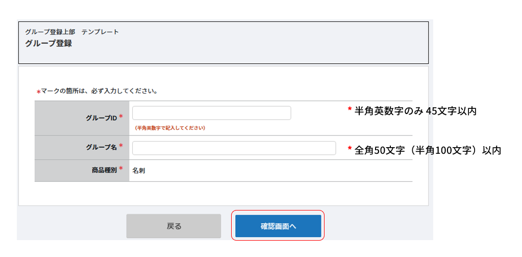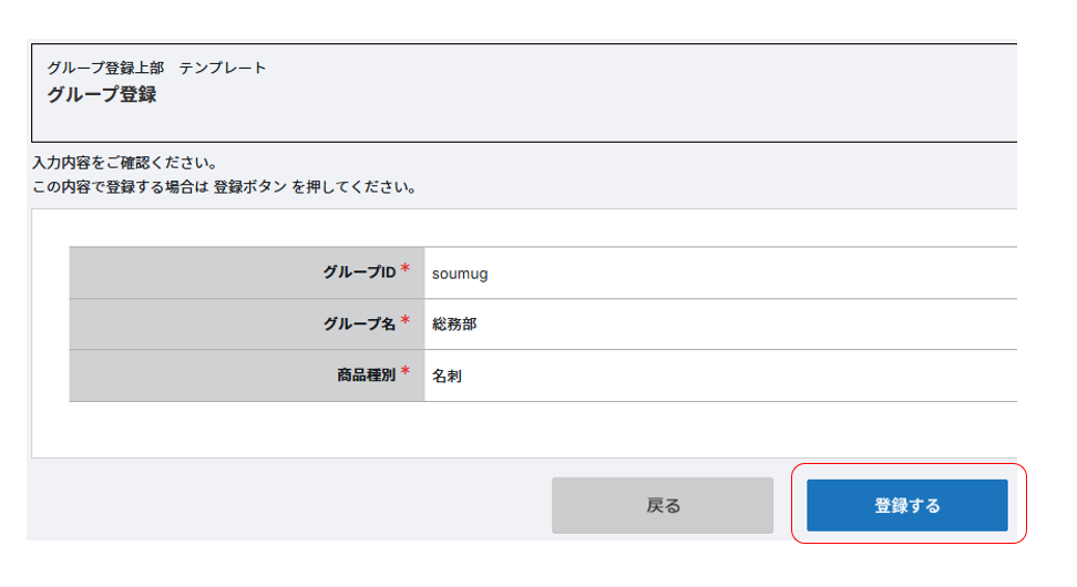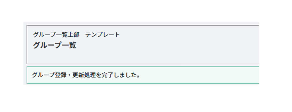 メッセージ「グループ登録・更新処理を完了しました。」が表示されましたら、グループの新規登録は完了です。