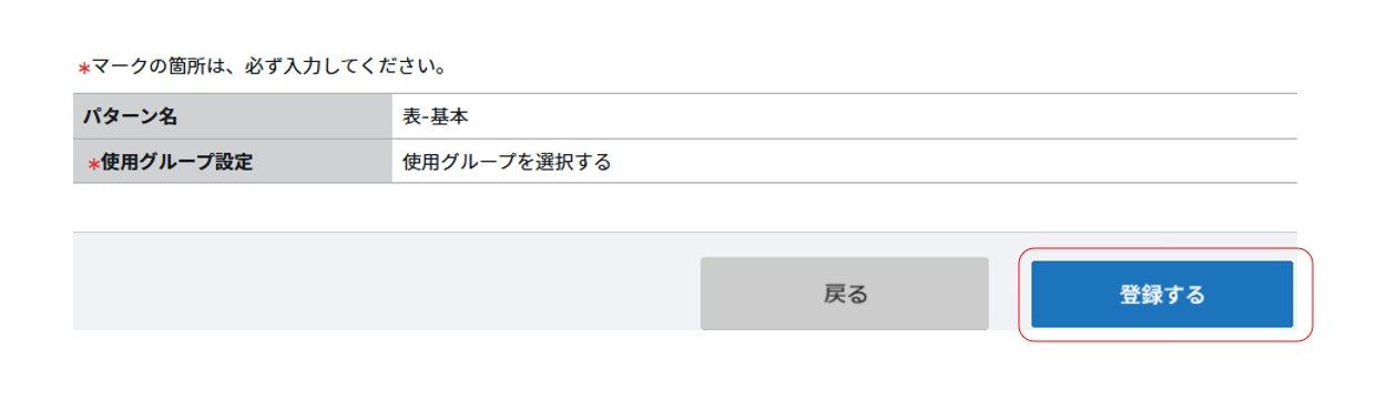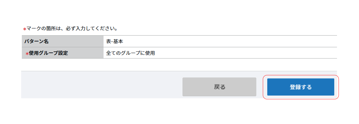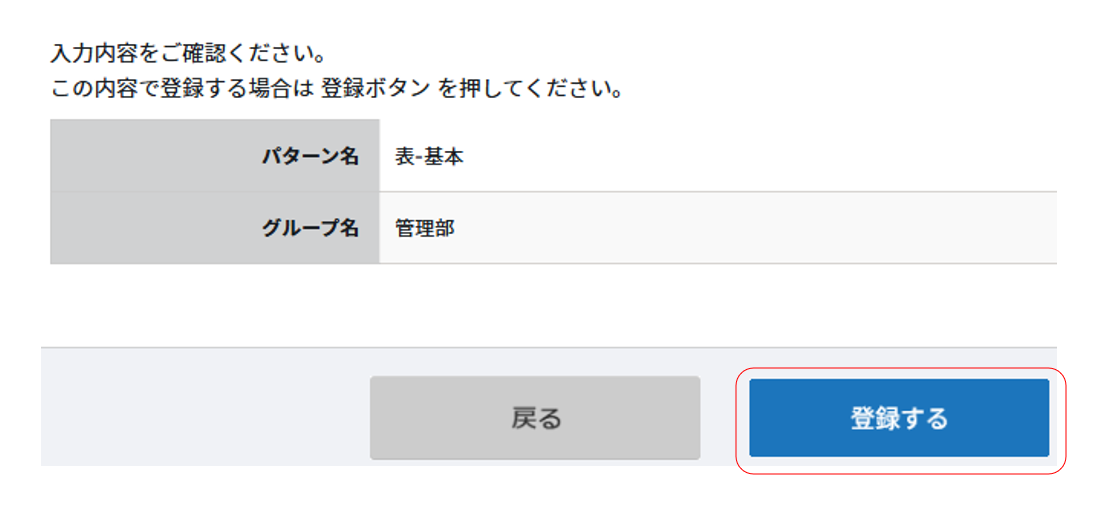 ⑧下記の画面が表示されますので、「登録する」をクリックしたらパターンの修正が完了です。
