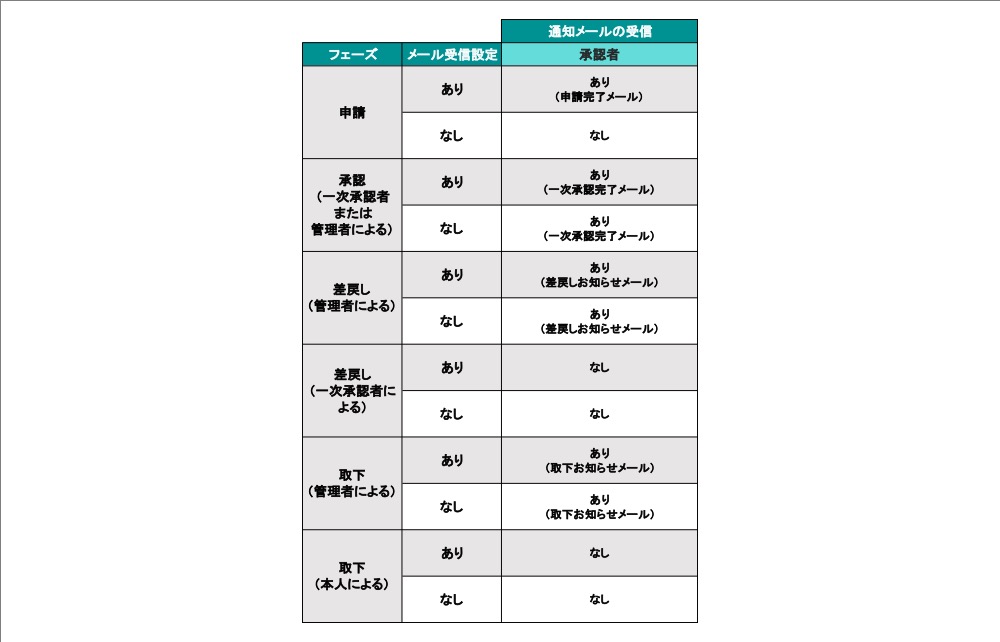 メール通知の種類(承認者権限)