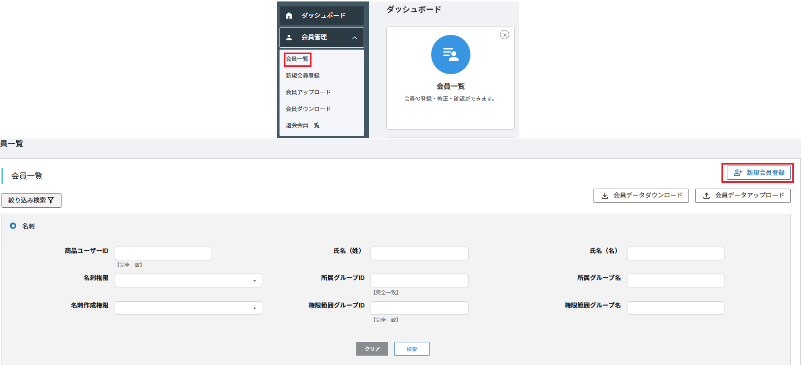 ※会員一覧の画面からも新規作成画面に移行することができます。