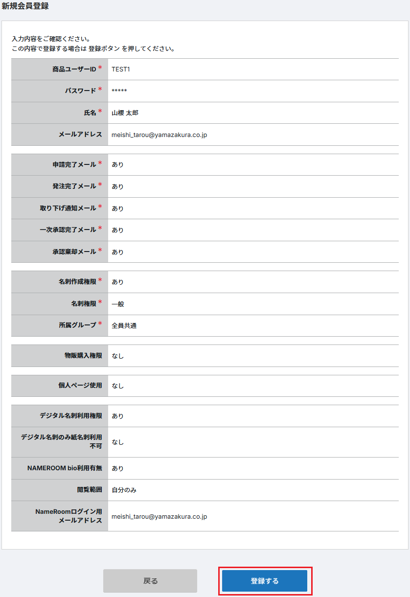 ④下記の画面が表示されますので、内容を確認のうえ、「登録する」をクリックします。