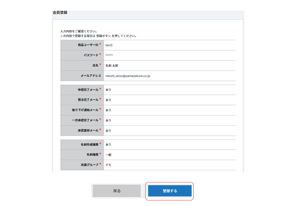 入力内容を確認し、問題が無ければ「登録する」をクリック。