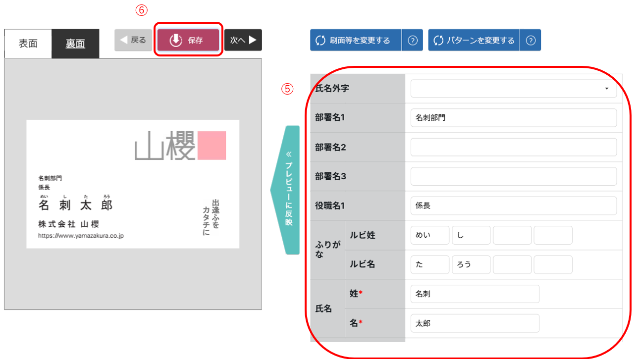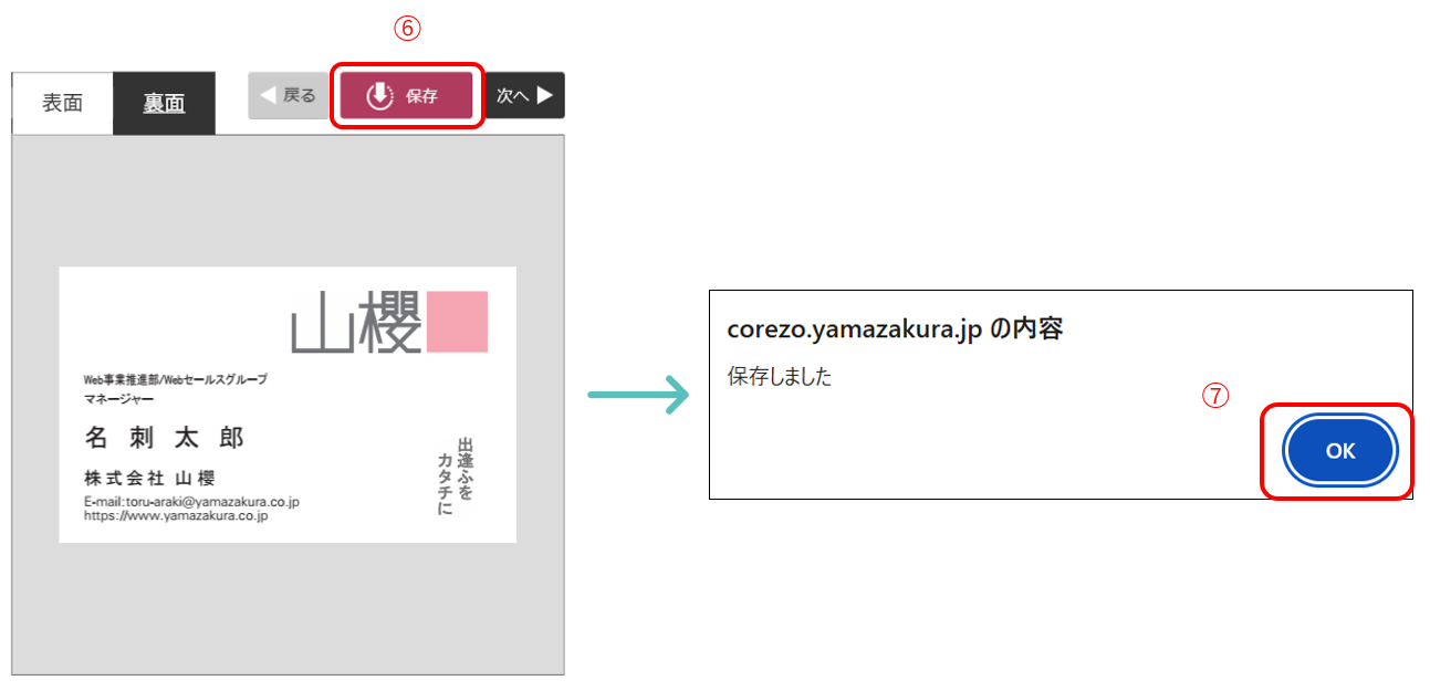 ⑥名刺のレイアウトを確認後、「保存」をクリックして現在のレイアウトを保存します。