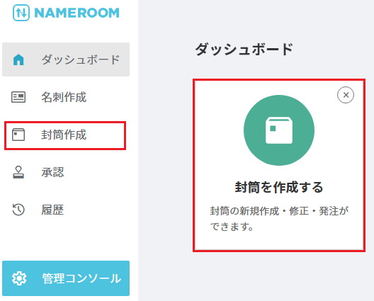 ①ホーム画面の「封筒を作成する」アイコンをクリックします。