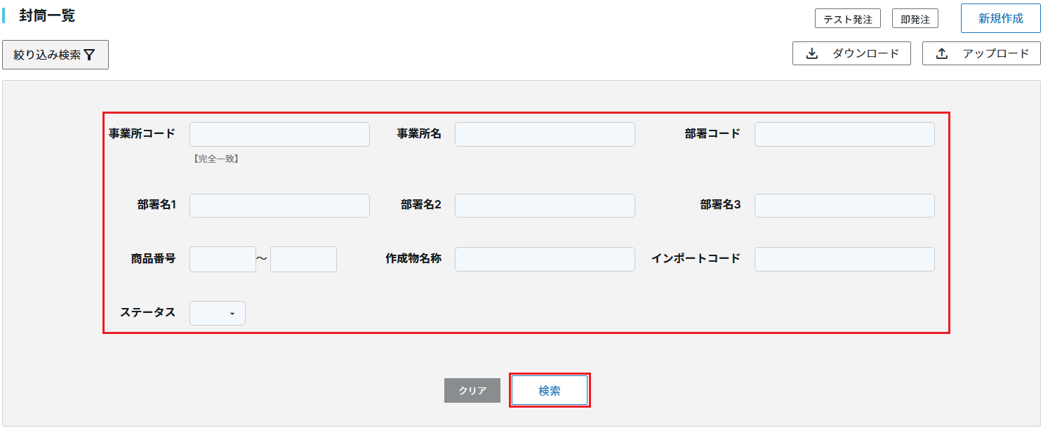 ②下記の画面が表示されますので、注文したい商品のキーワードを入力し 「検索する」をクリックします。 ※キーワードを入力しない場合は全件が表示されます。