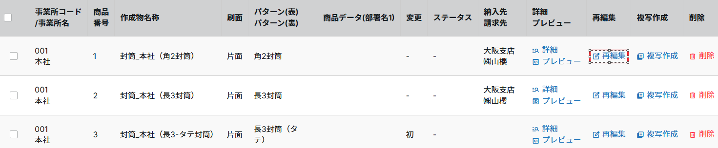 ③注文したい商品の「再編集」をクリックします。