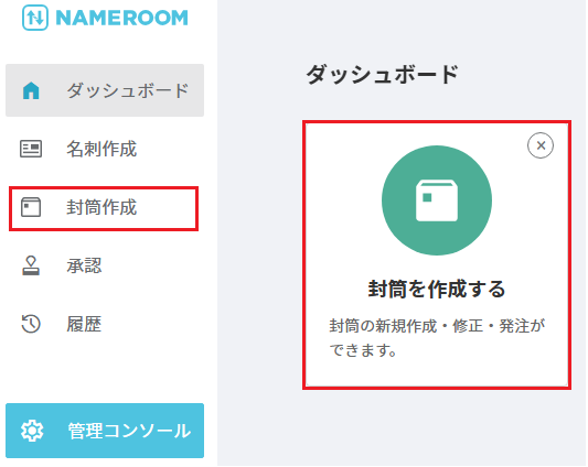 ①ホーム画面の「封筒を作成する」アイコンをクリックします。