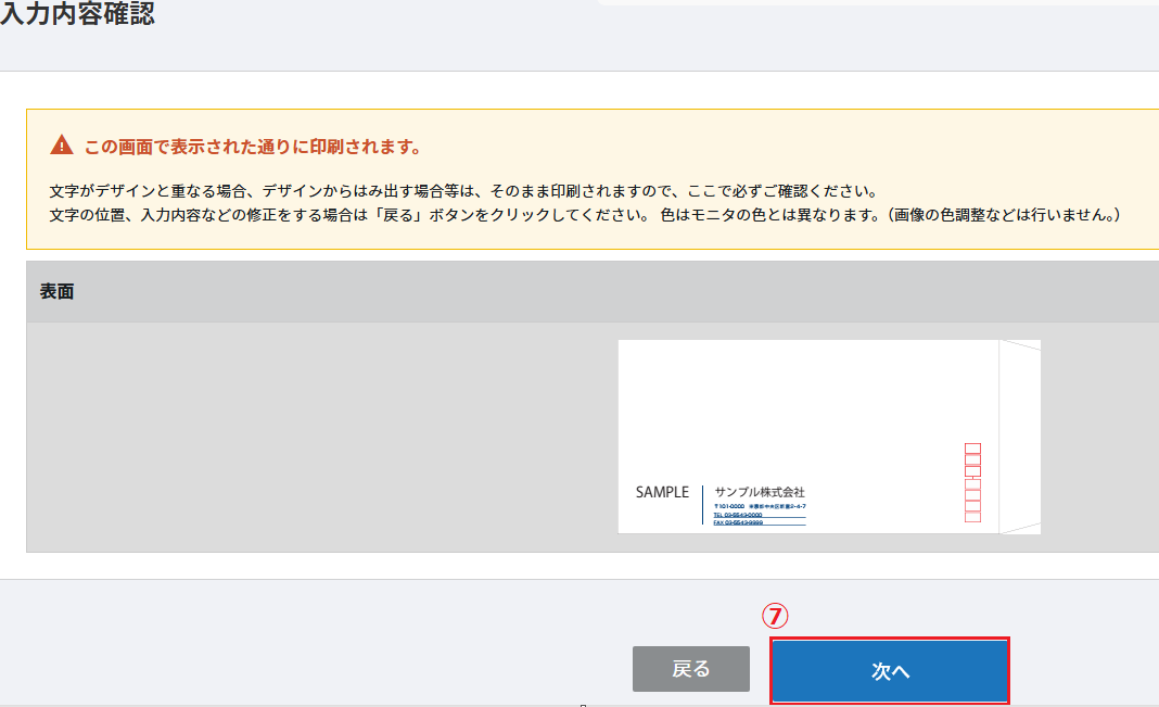 ⑦編集内容の確認の画面が表示されますので、編集内容を確認し「次へ」をクリックします。