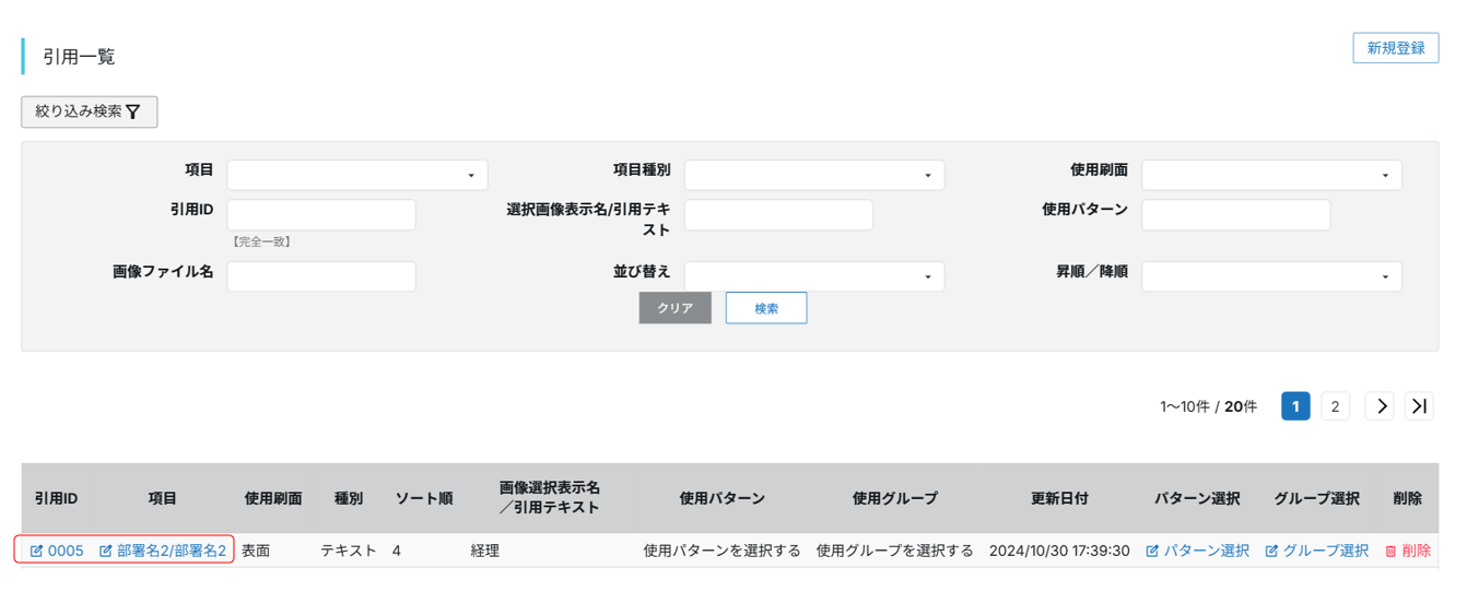 ホーム画面「管理コンソール」の一覧から「名刺設定」をクリックし、続けて「引用管理(名刺)」をクリック。