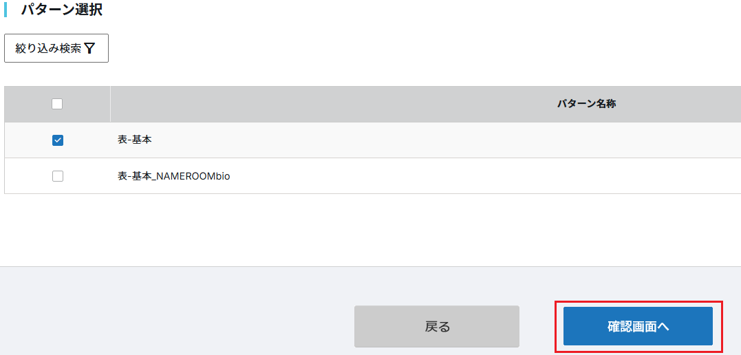 ⑦使用パターン設定にて「使用パターンを選択する」を選択した場合、パターン選択の画面に移行します。