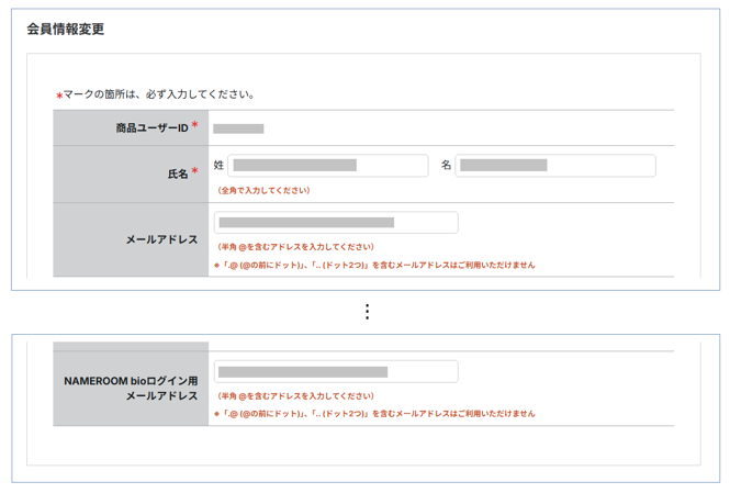 会員情報画面に「NAMEROOM用メールアドレス」項目が追加されるので、こちらに登録してあれば、このメールアドレスがNAMEROOMに使えます。