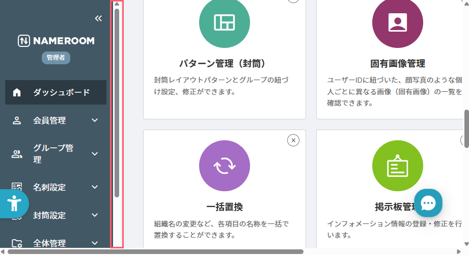画面サイズが小さい環境でも快適に操作いただけるよう、管理コンソール画面のサイドメニューに縦スクロールを追加しました。これにより、ノートPCなどの限られた表示領域でも、すべてのメニュー項目にアクセスしやすくなっています。なお、発注管理画面ではすでに同様の対応を行っており、今回の改善で両画面の操作性が統一されました。
