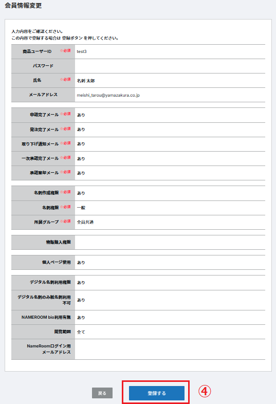 ④確認情報変更の確認画面が表示されますので、内容を確認のうえ、 「登録する」を クリックします。