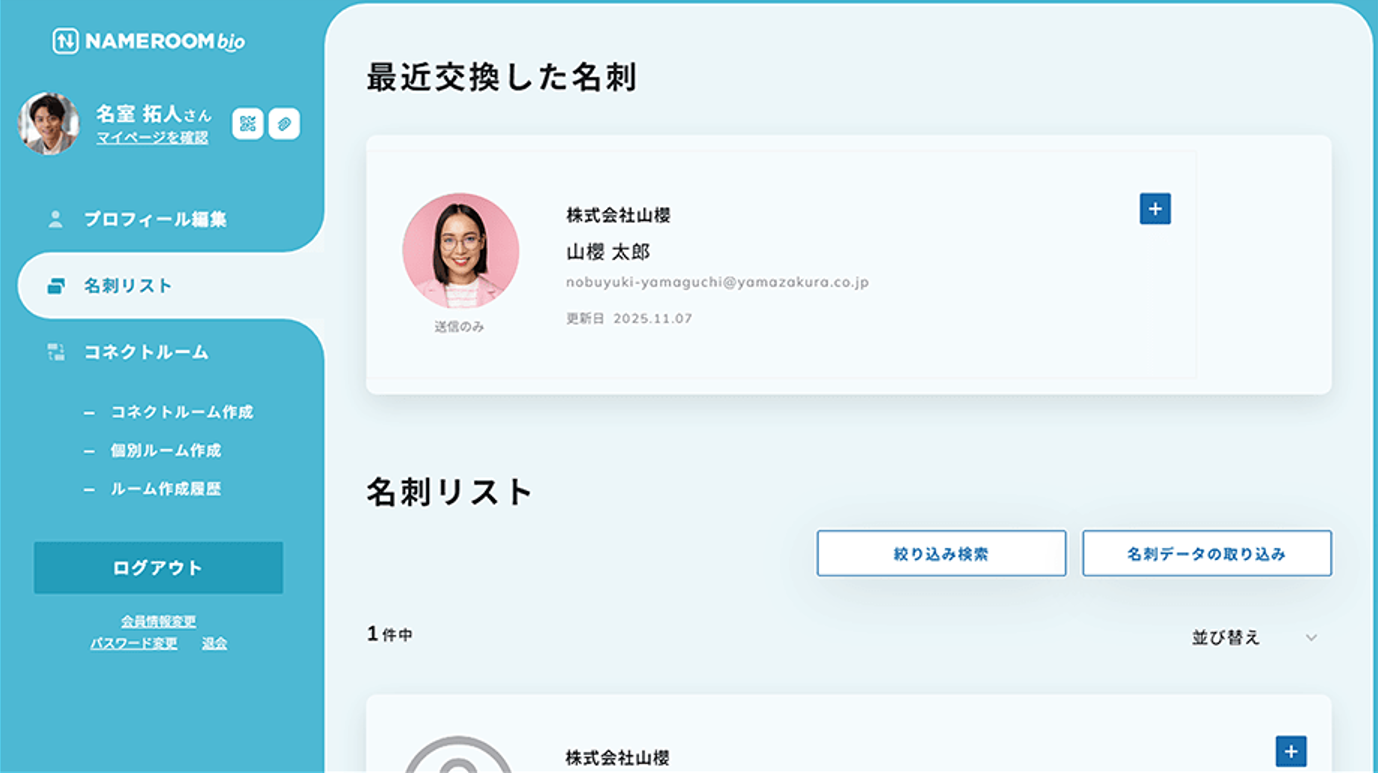 これまで交換した名刺がリストの下部に表示され、探しづらいという声を反映し、改善しました。