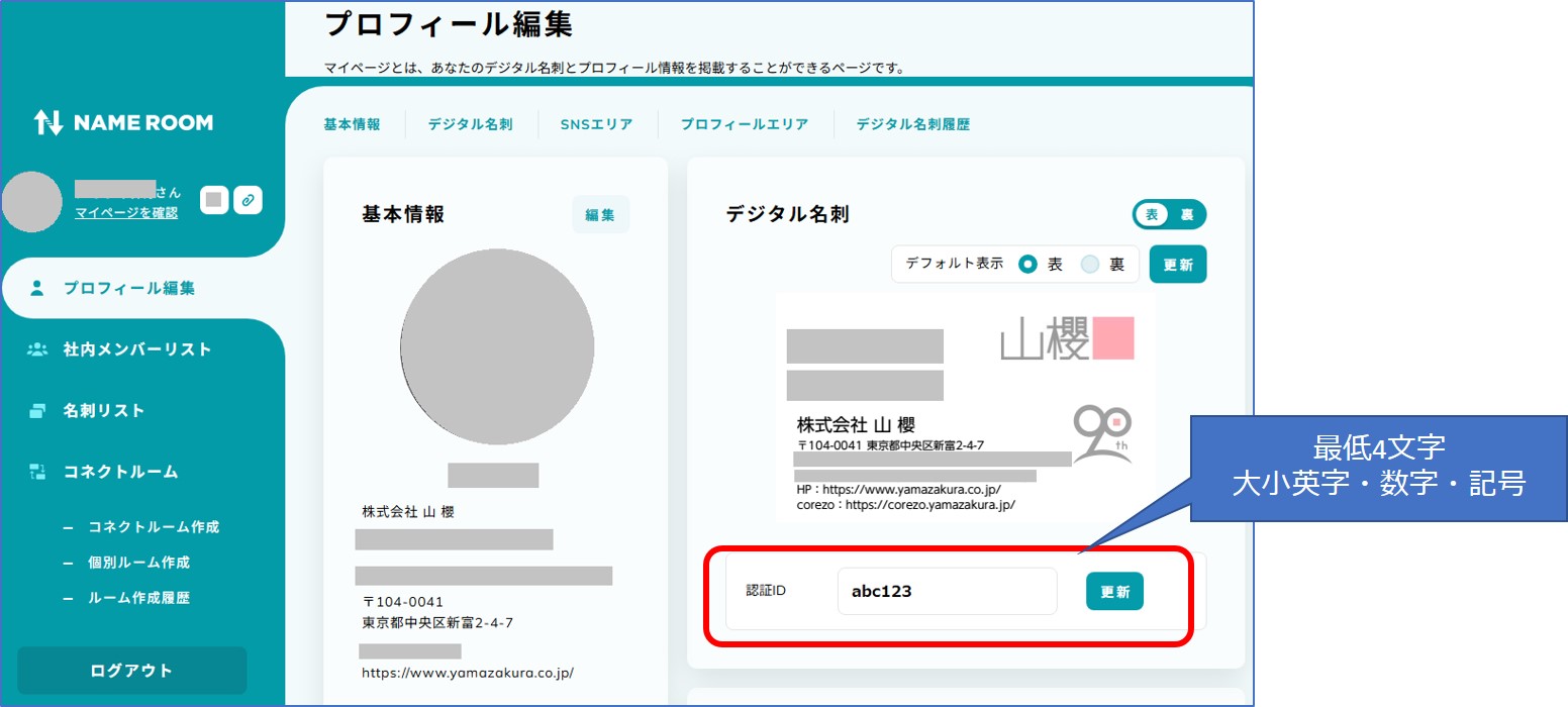 デジタル名刺カードを使う為には、まずカードとデジタル名刺を紐付けする「認証ID」を登録します。