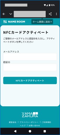 NAMEROOMの画面が表示されますのでメールアドレスと「認証ID」を入力し「アクティベート」ボタンをタップします。