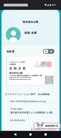 ご自身のデジタル名刺が相手に表示されますので、名刺交換などご利用ください。