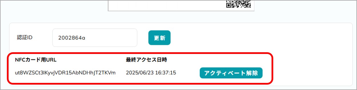 プロフィール編集画面に登録したカードのURLが表示されているので、「アクティベート解除」をクリックします。