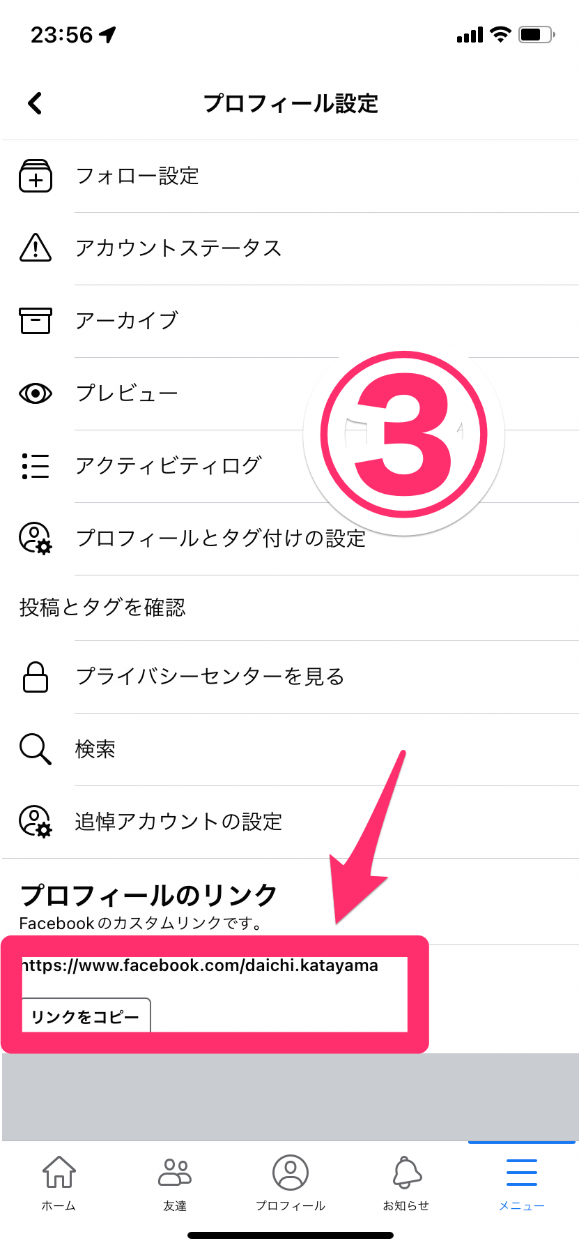 Facebook URL の取得方法