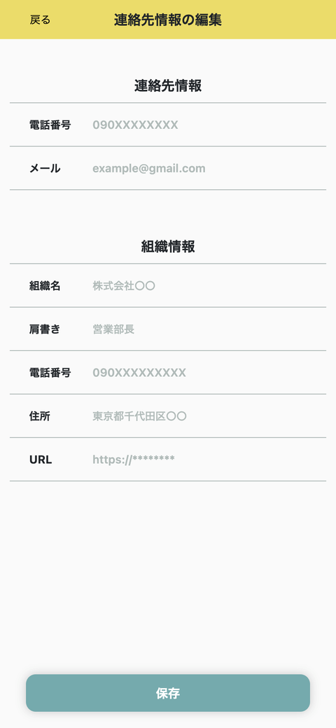 会社ホームページ情報、資料など相手にお見せしたい情報を設定することができます。設定したコンテンツをタップした際に遷移する先のURLを指定することができるため、会社のホームページや資料はもちろん、動画や日程調整ツールを設定することも可能です。