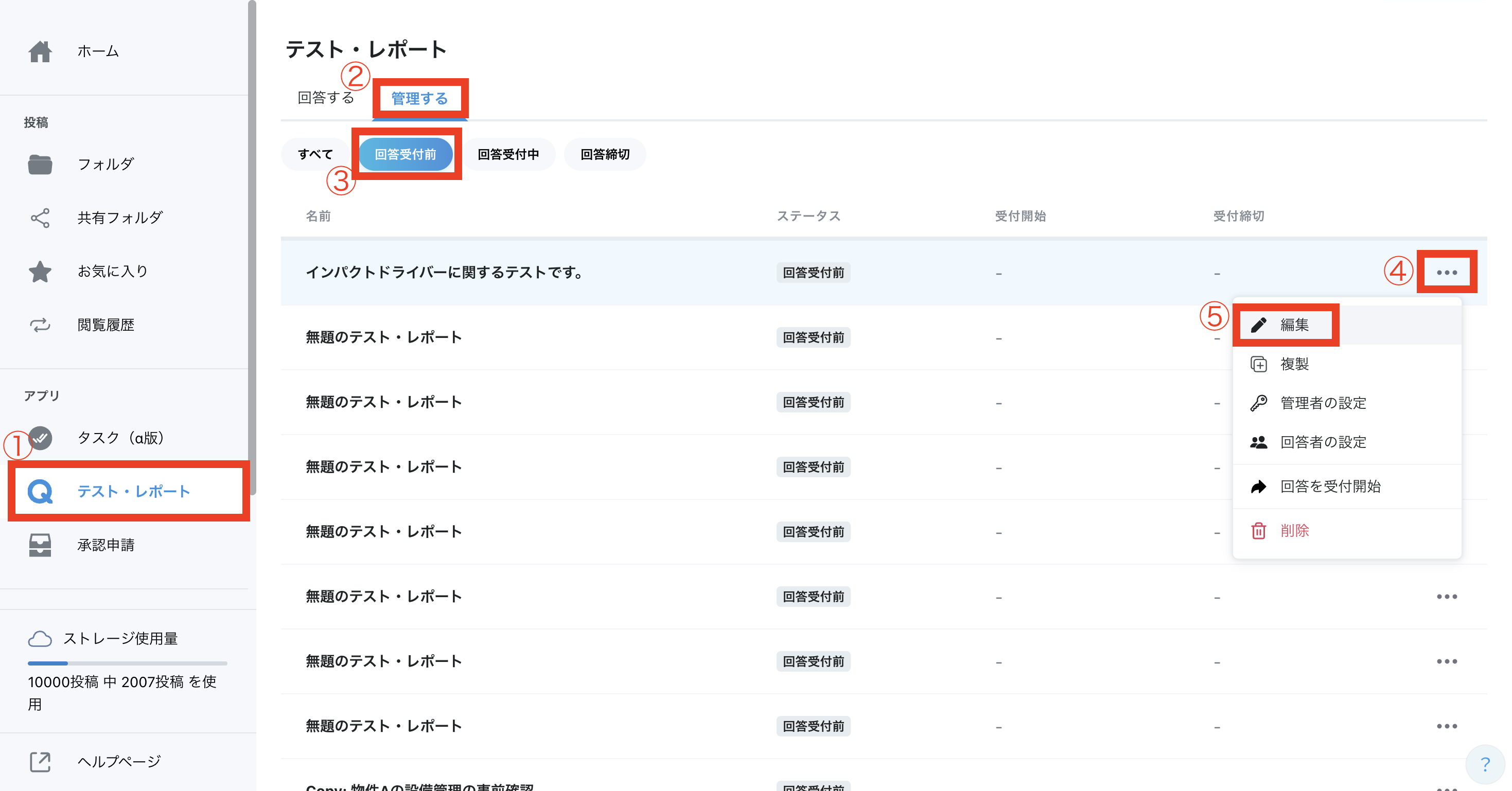 AïŒã¯ãããã¹ãã®é²èЧã»åçã¯å¯èœã§ãïŒã¢ããªç»é¢å³äžã®ããã¹ãã»ã¬ããŒããããïŒã ãã ããäœæã管çã¯Webçã®ã¿å¯Ÿå¿ãšãªããŸãã