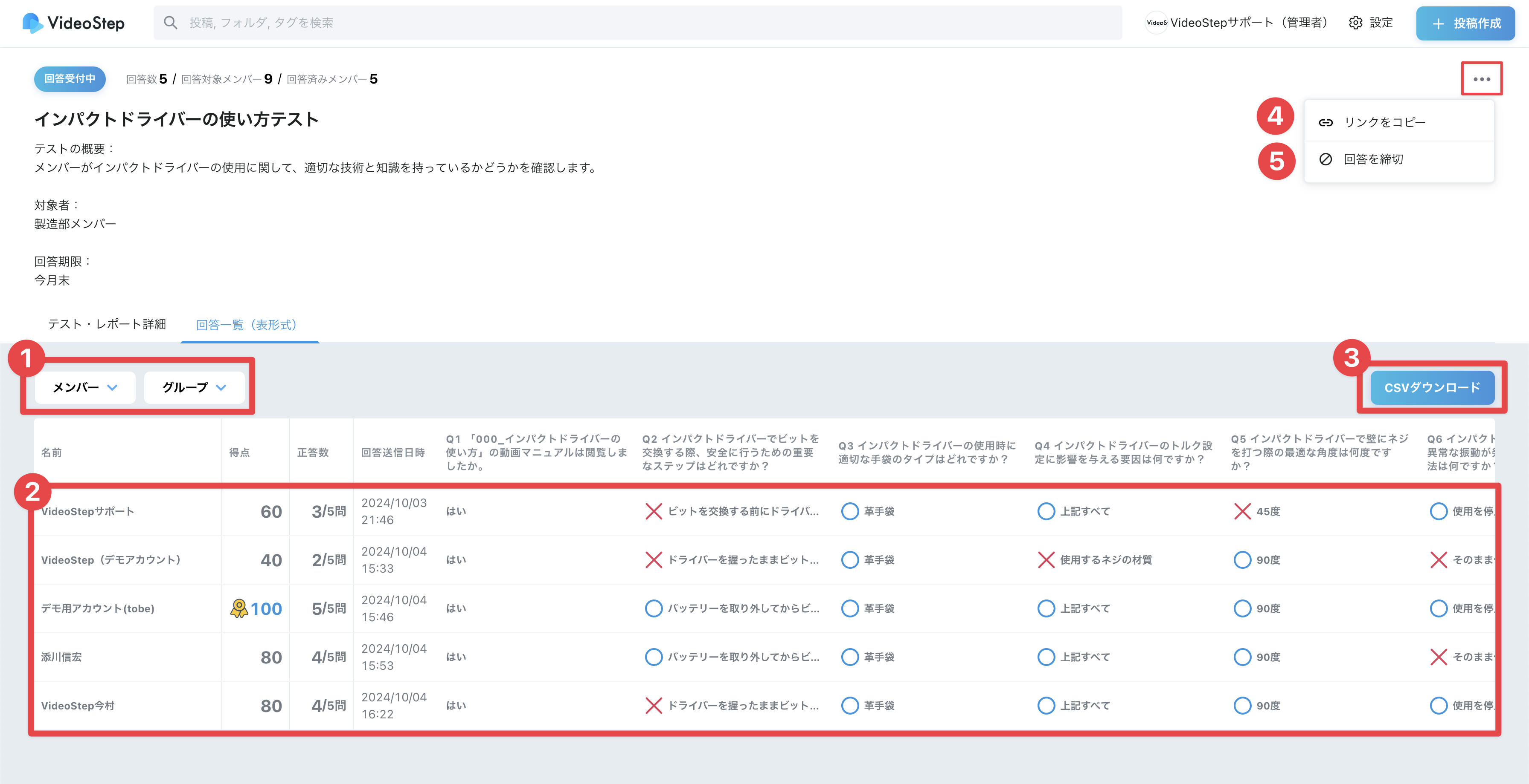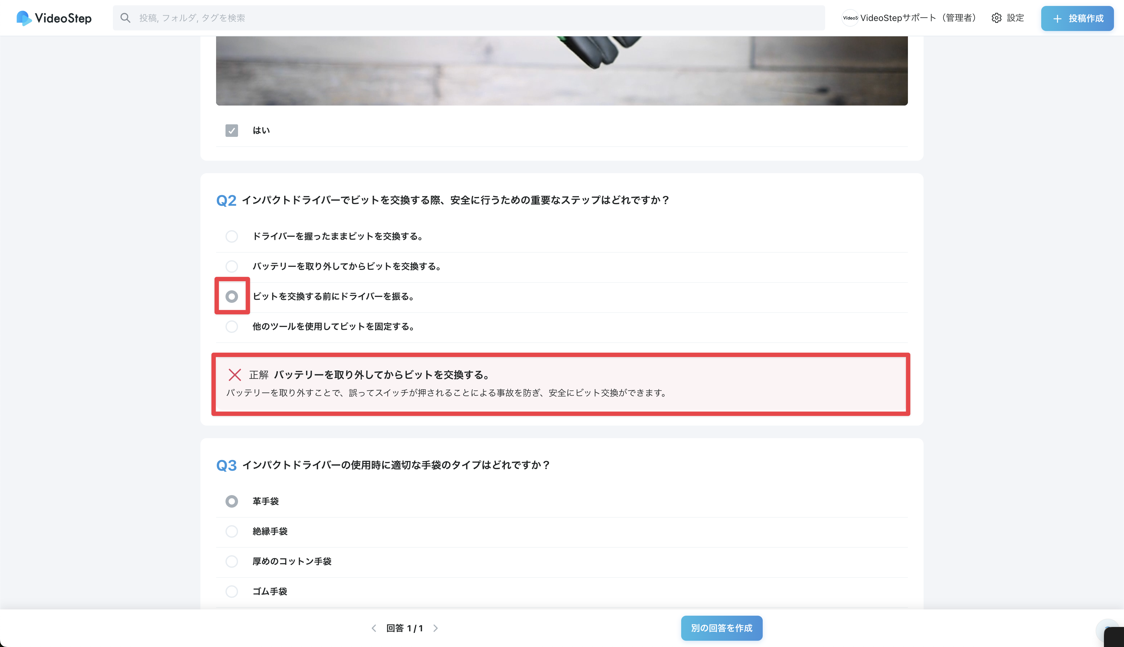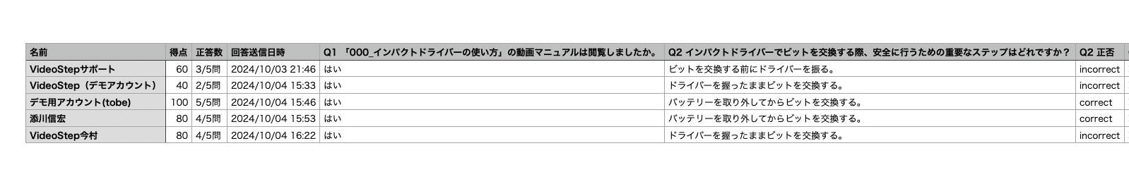 VideoStepã®ããã¹ãã»ã¬ããŒãæ©èœãã§ã¯ãããã¥ã¢ã«ã«é¢ããç解床ãã§ãã¯ãã¢ã³ã±ãŒããäœæã»å®æœããããšãå¯èœã§ããããã«ããããŠãŒã¶ãŒãã©ã®çšåºŠããã¥ã¢ã«ãçè§£ããŠããããå®ç床ãå¯èŠåããããšãã§ããŸãã