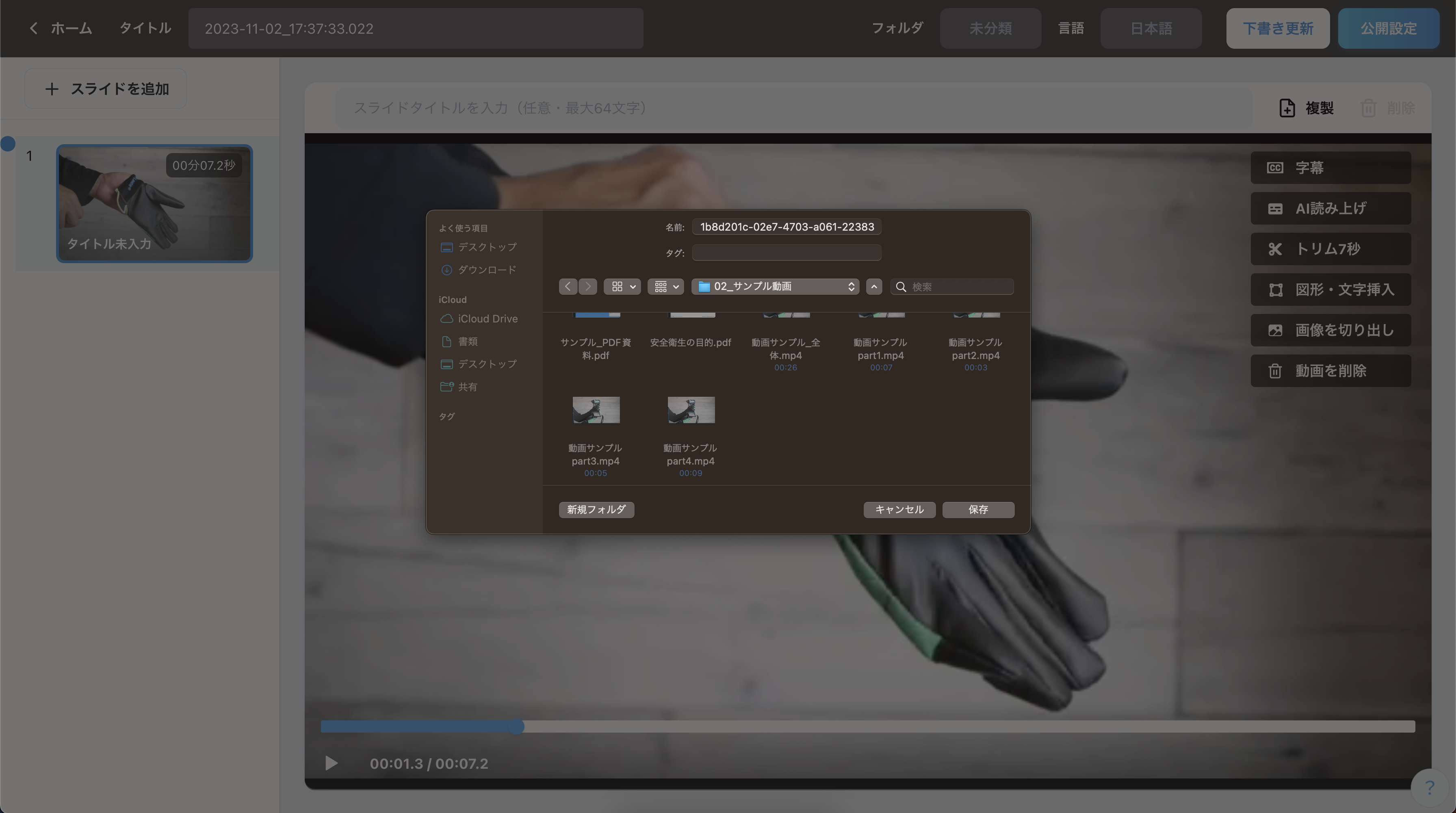 注意:保存時のファイル名は元のファイル名と異なっており、自動的に付与されます。