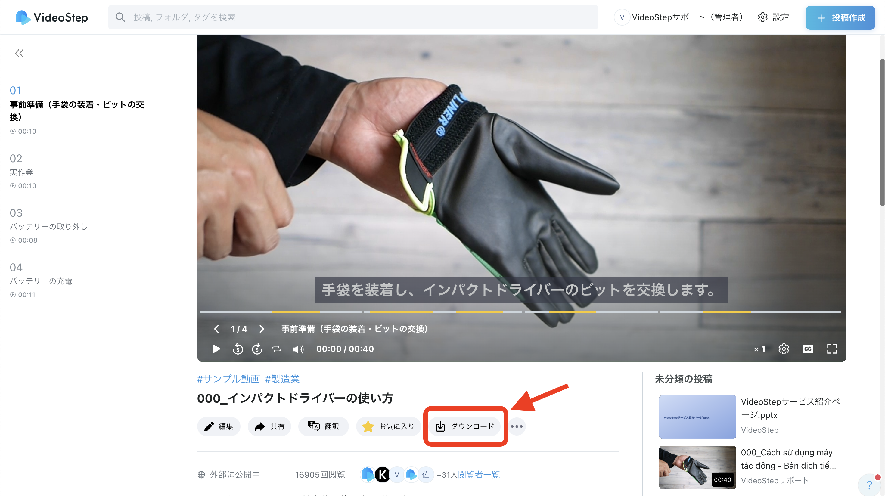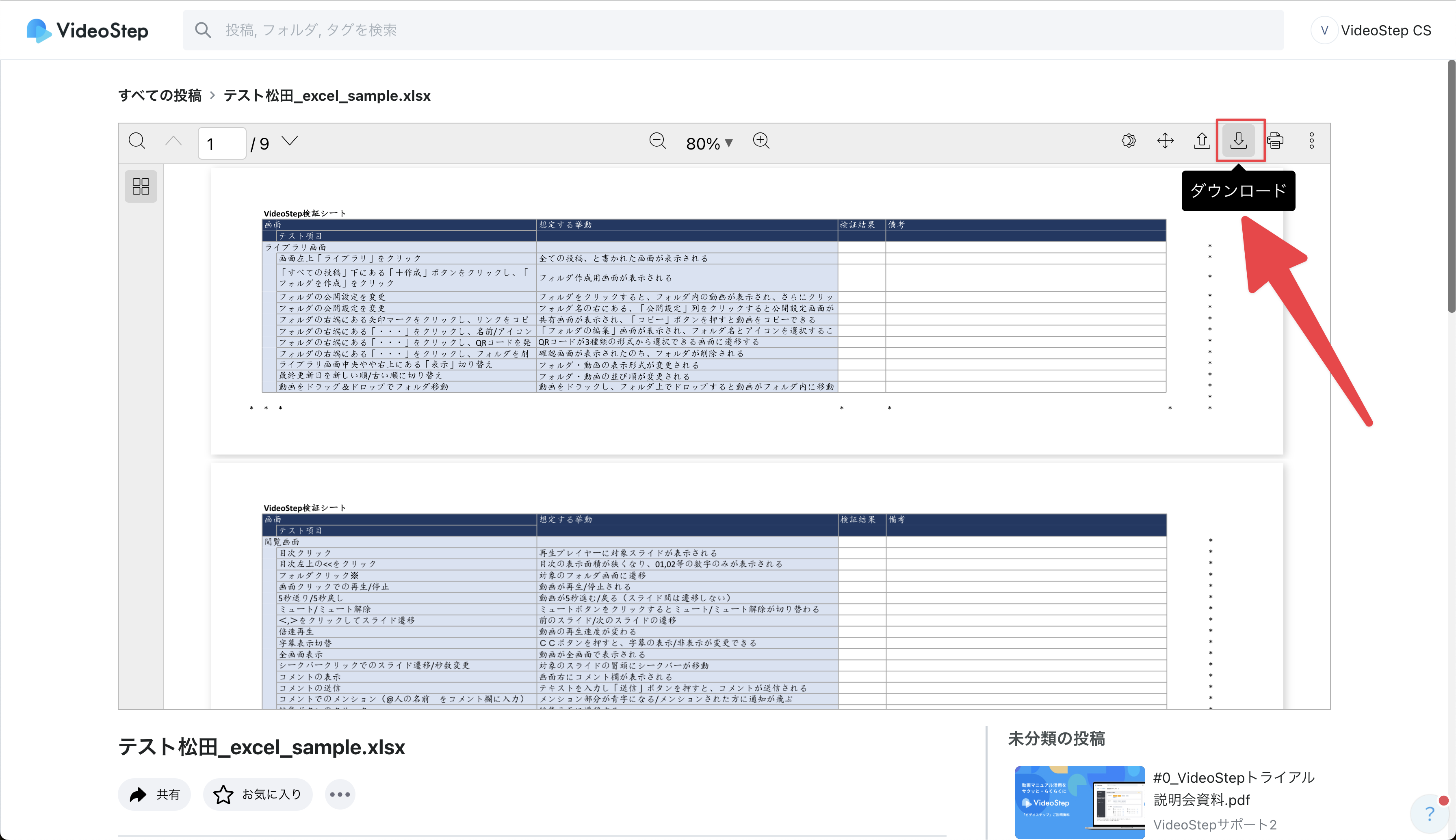 投稿閲覧画面 の下部にある「ダウンロード」をクリック