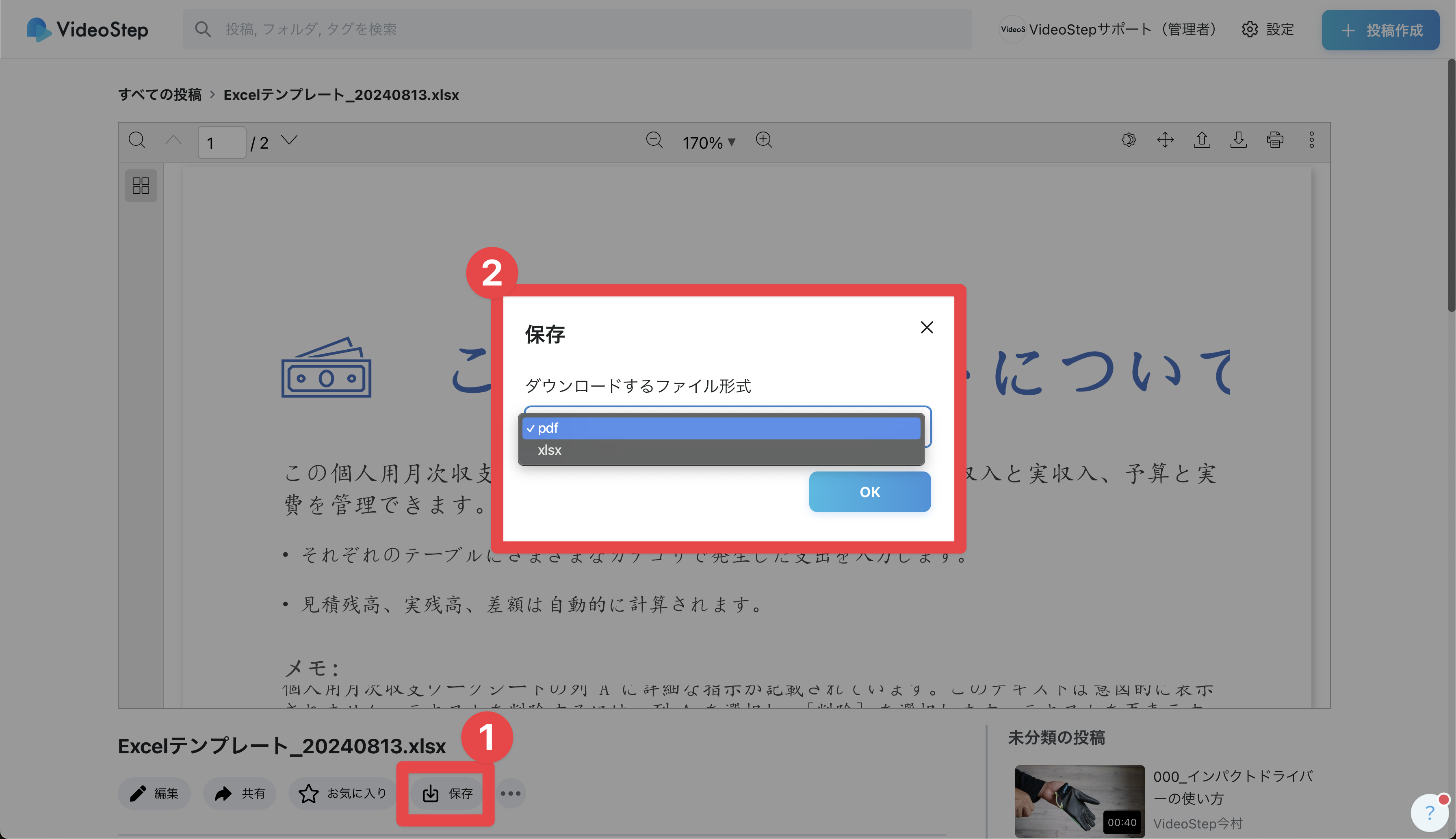 OfficeまたはPDFファイルを取得:閲覧画面 下部にある「↓保存」をクリック(管理者/編集者のみ)