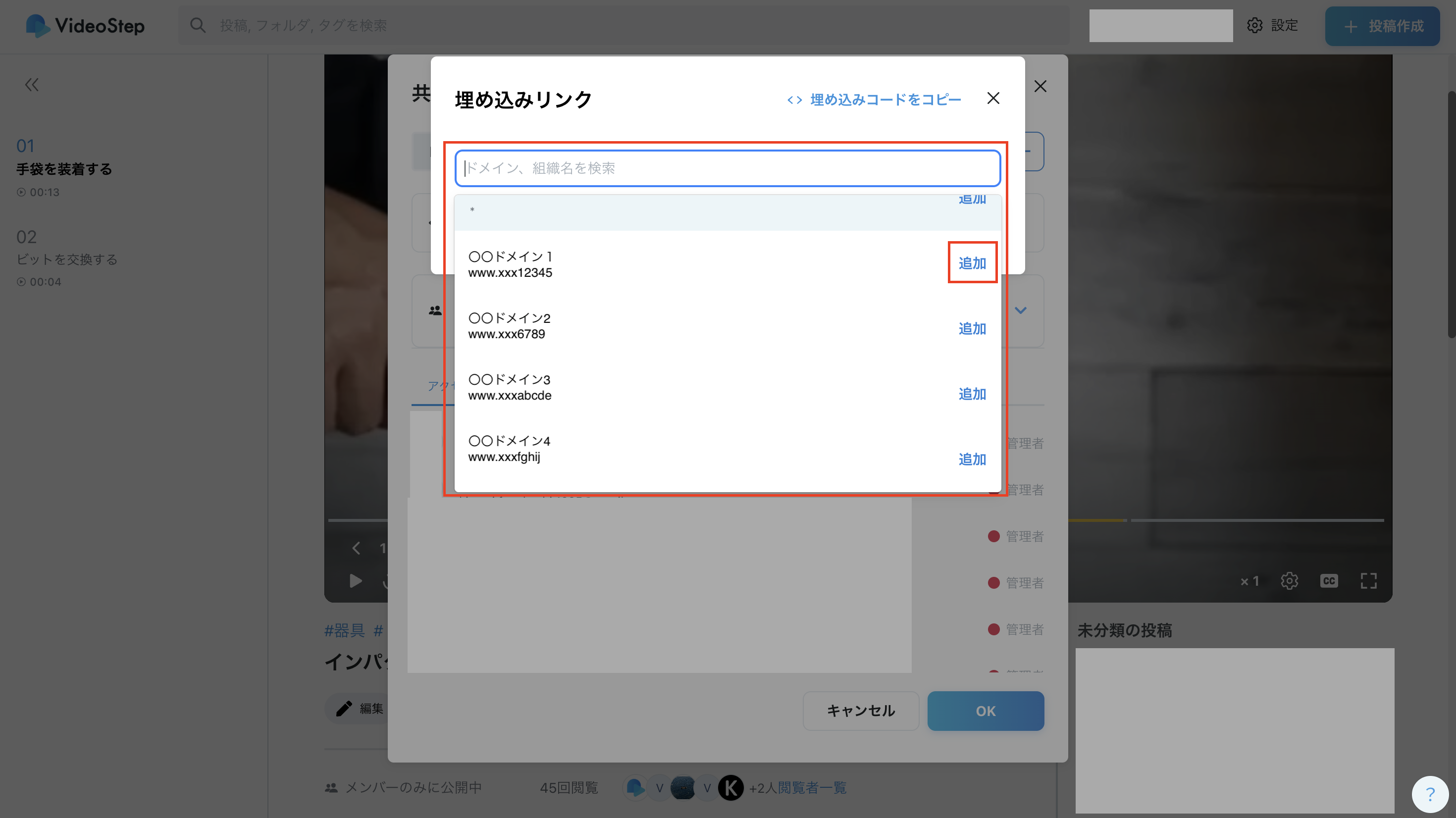 VideoStepã®ã¯ãŒã¯ã¹ããŒã¹èšå®ç»é¢ã§ãæçš¿ãåã蟌ãããšãã§ãããã¡ã€ã³ããã³ãã¹ãæå®ã§ããŸãã