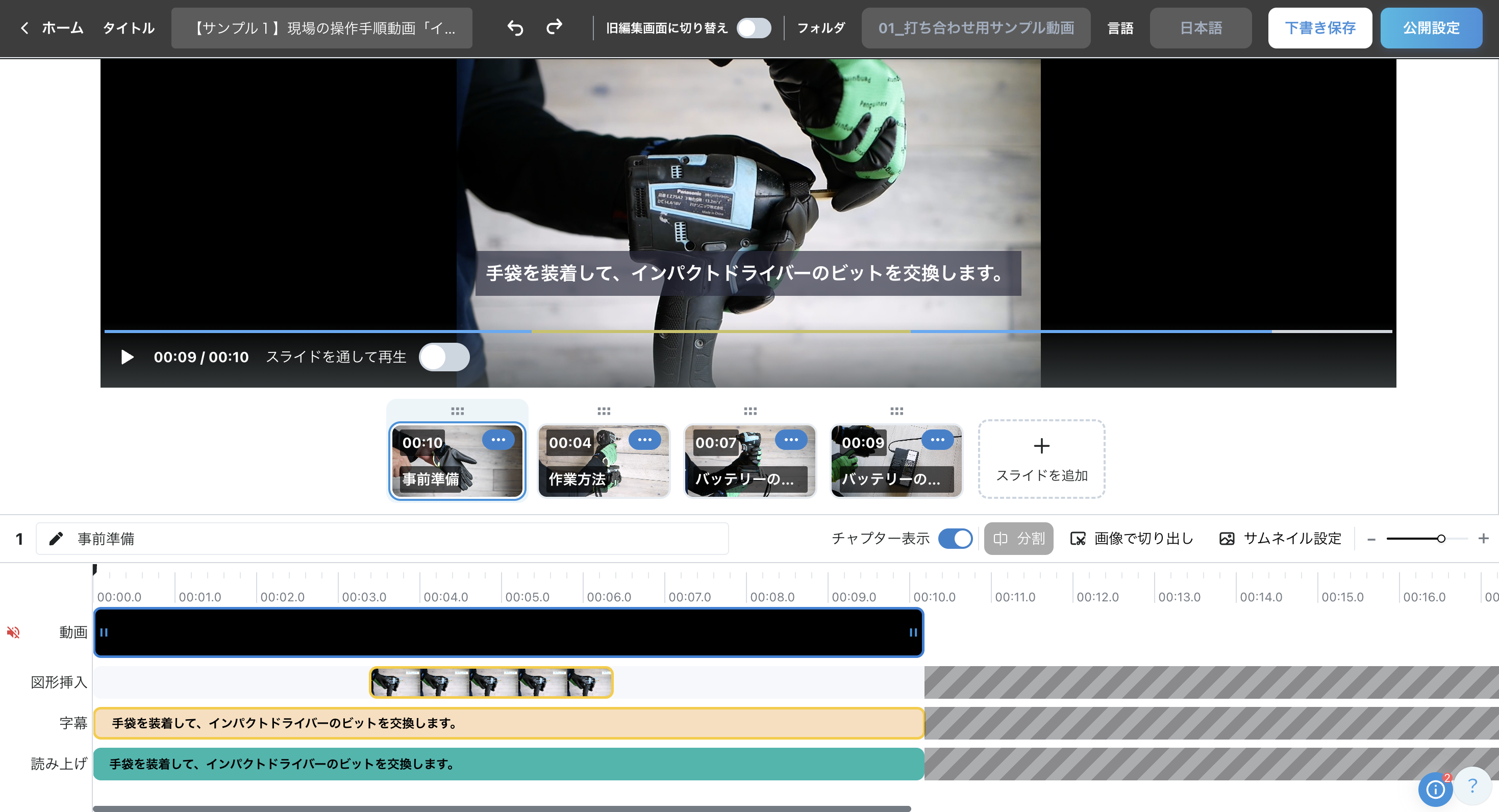 説明しながら撮影することで、字幕のAI文字起こしをしたり、AIによるナレーション(AI読み上げ)をつけることが可能です。
